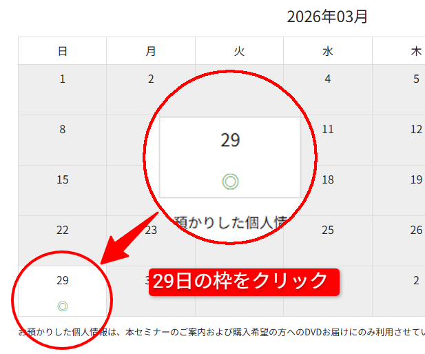 1.カレンダーの3月29日欄を選択します。